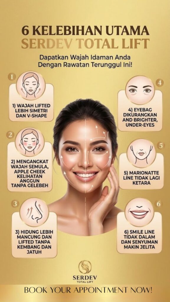 Bayangkan apabila sokongan wajah ini dikuatkan semula dengan teknik SERDEV, wajah boleh kembali kelihatan lebih tegang, lebih segar dan lebih muda – seperti wajah asal yang anda idamkan.