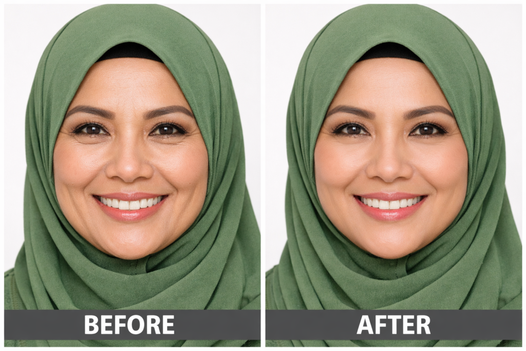 “Puas hati sangat! Saya dah cuba macam-macam krim mahal tapi garis senyum tetap nampak jelas. Selepas buat rawatan ni, kawasan smile line nampak lebih penuh dan kulit rasa lebih lembap dari dalam. Memang berbaloi dengan pelaburan sebab nampak kesan serta-merta. Rasa lebih yakin bila bercakap dengan orang depan-depan.”— Farah, 52 tahun