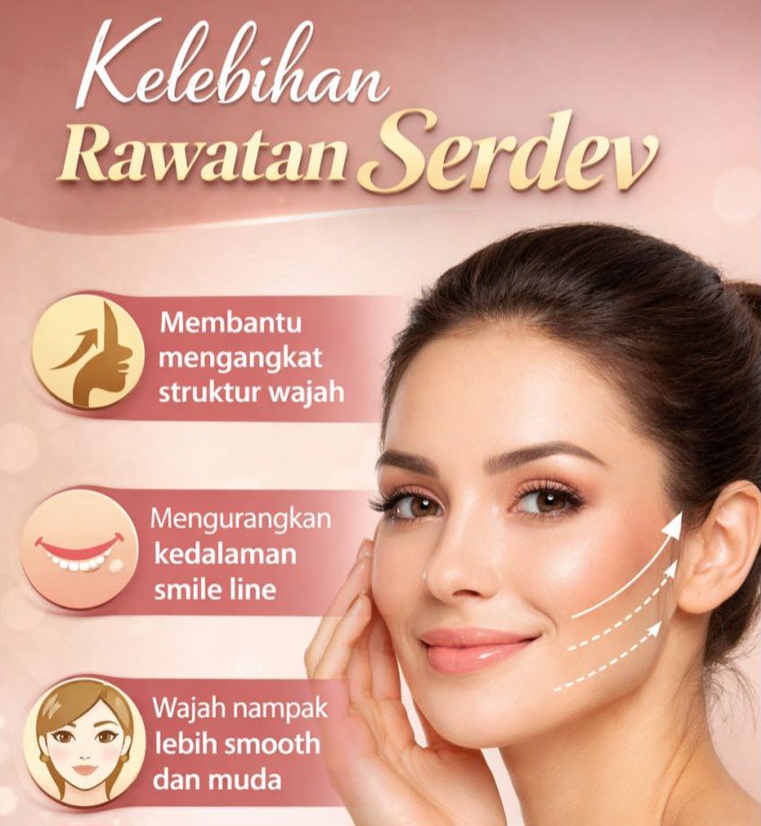 “Dulu saya selalu rasa insecure nak senyum lebar sebab smile line saya nampak jelas sangat, sampaikan mekap pun selalu ‘crack’ kat kawasan tu. Selepas rawatan Serdev, kulit kawasan mulut nampak lebih tegang dan anjal. Mekap sekarang dah tak merekah lagi. Best sangat sebab tak ada downtime, habis rawatan terus boleh pergi kerja macam biasa!”— Sarah, 48 tahun